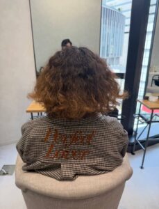 前回の施術でくせ毛を活かすカットに切り替えて、仕上がりへの反応も良かったお客様。