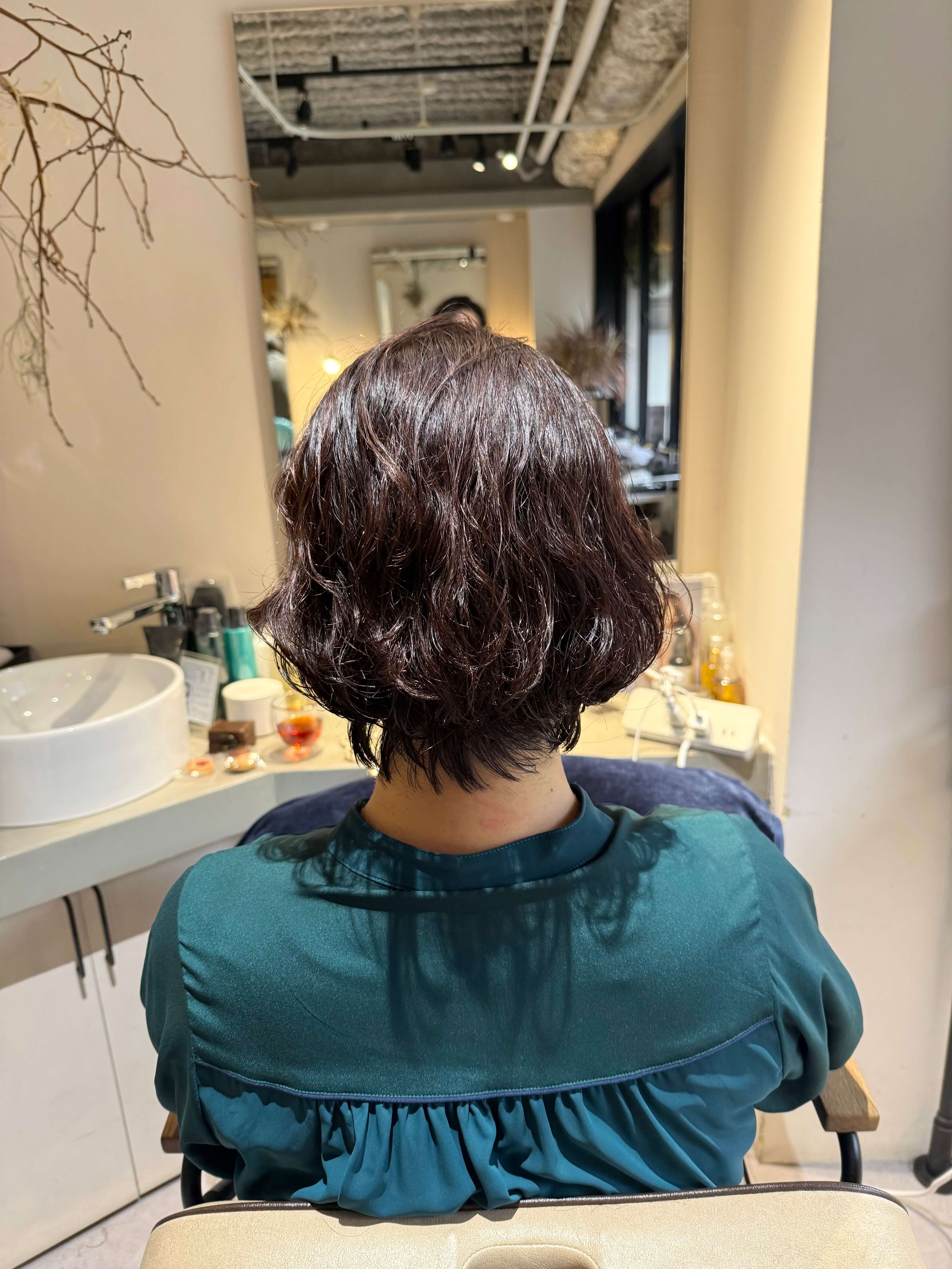 今回は丸みは残しつつくびれるくせ毛ショートボブに