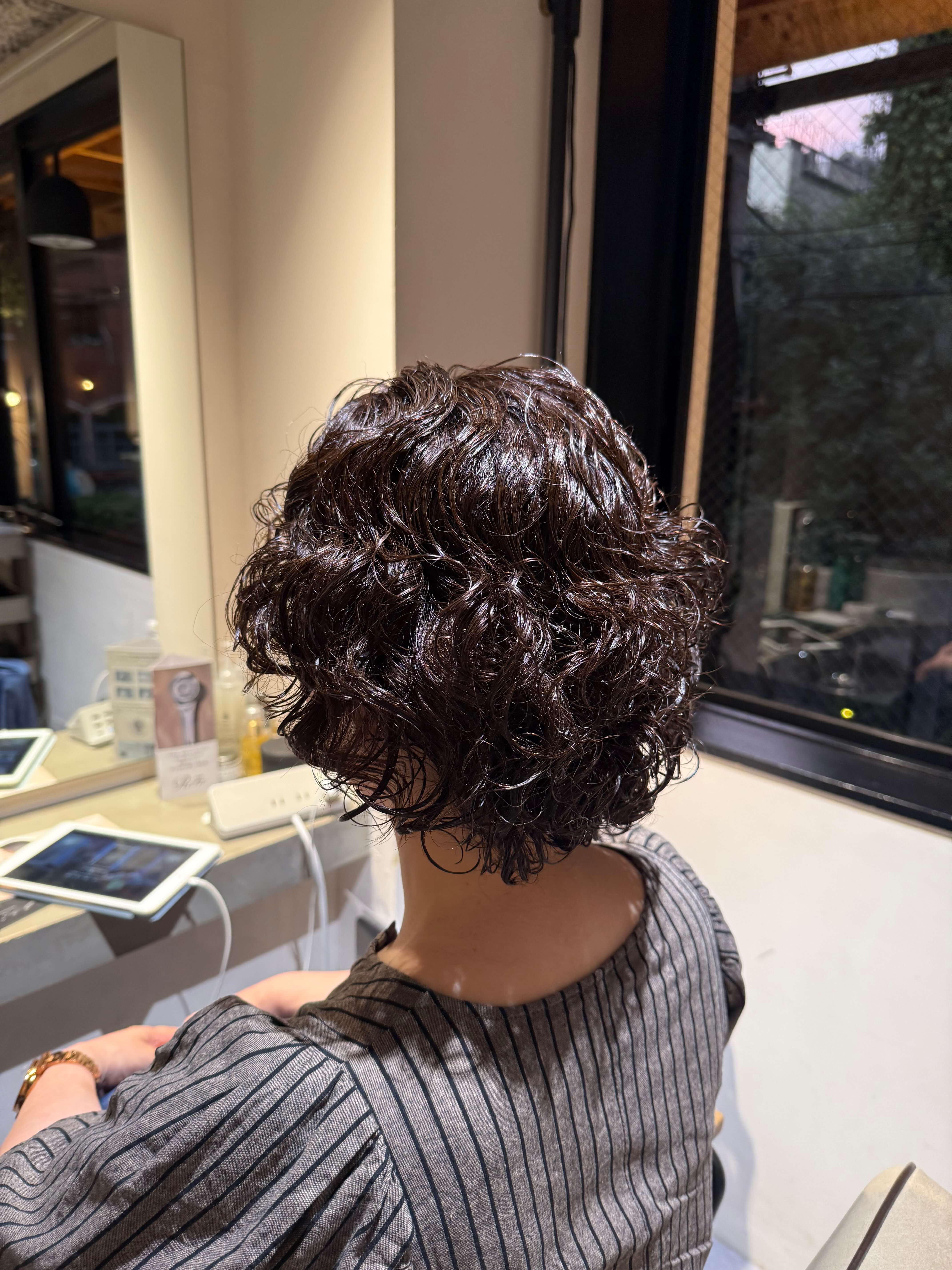 毛先にはデジタルパーマが少し残っている状態。