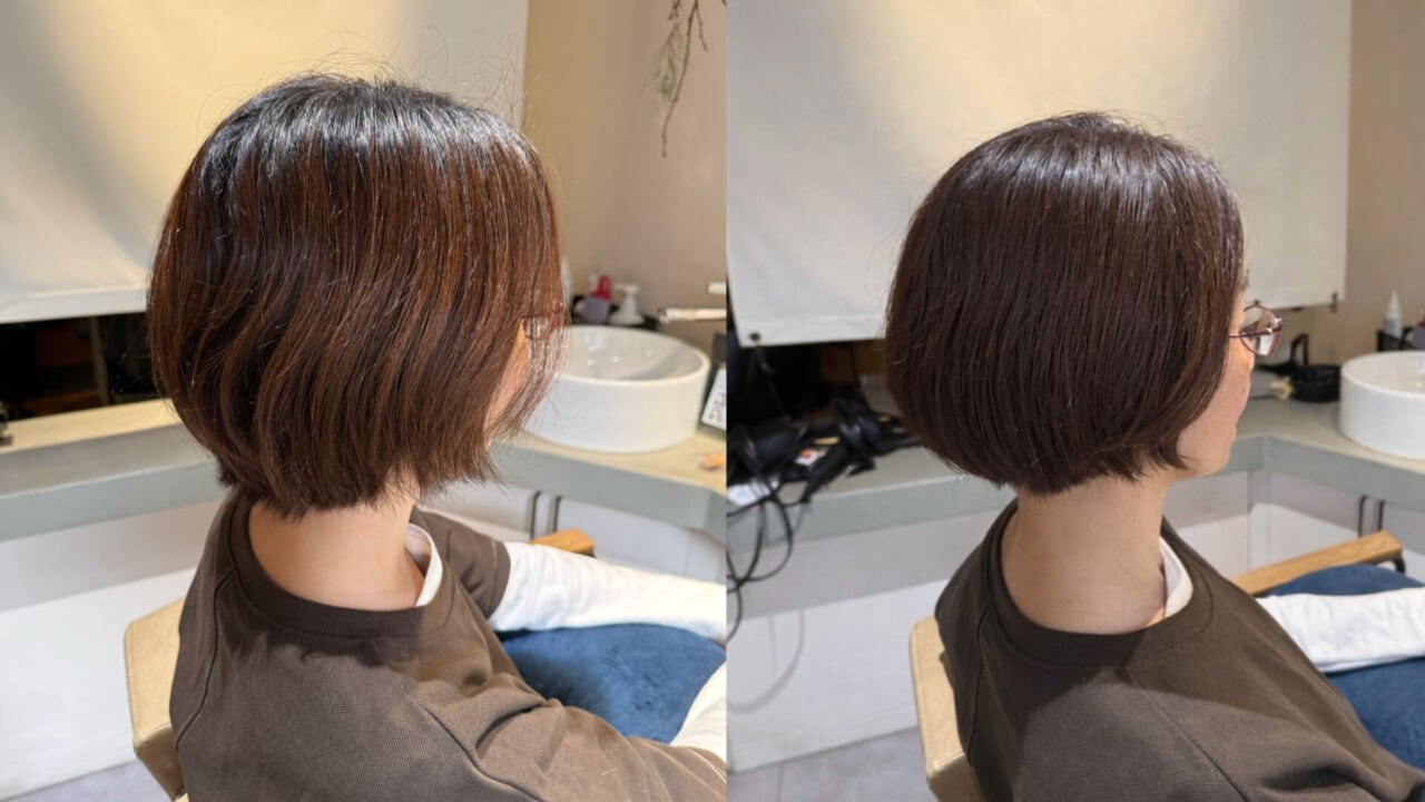 【脱縮毛矯正】くせ毛ボブは広がる?面長をカバーしたカット実例