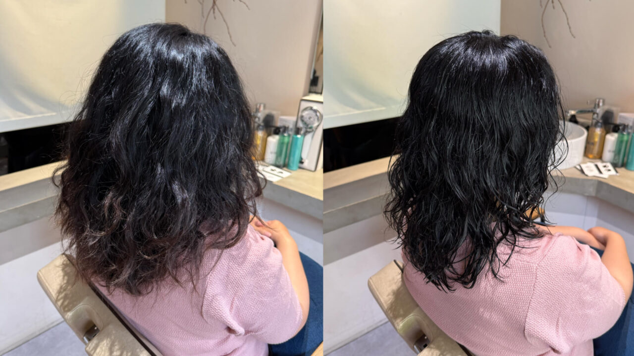 今回の施術で大切にしたのは、「くせ毛を活かすベースを整えること」と「毎日のスタイリングで再現できること」です。