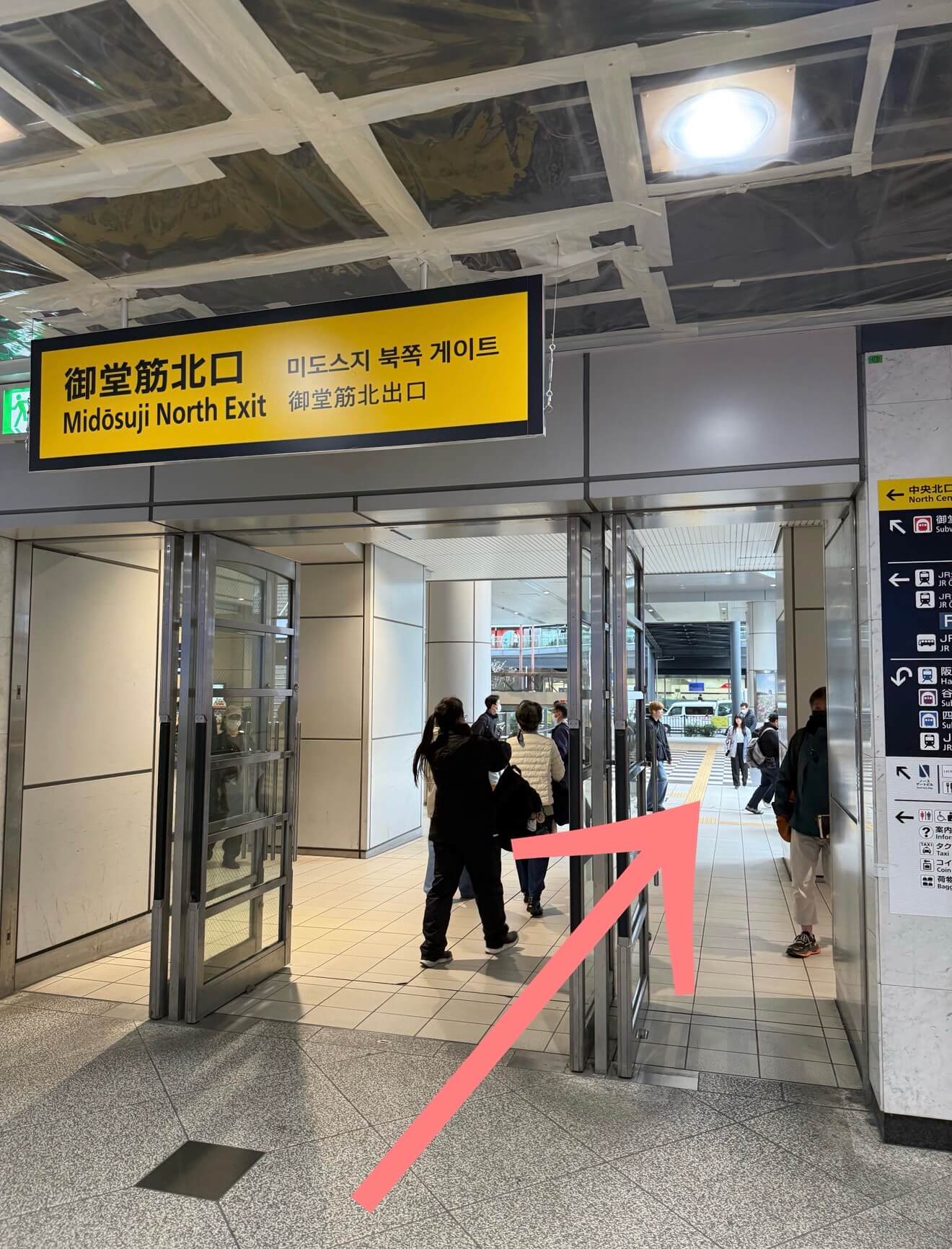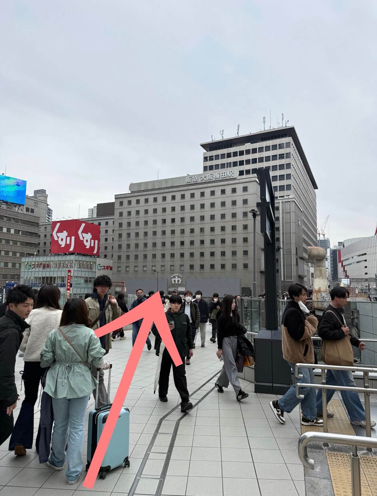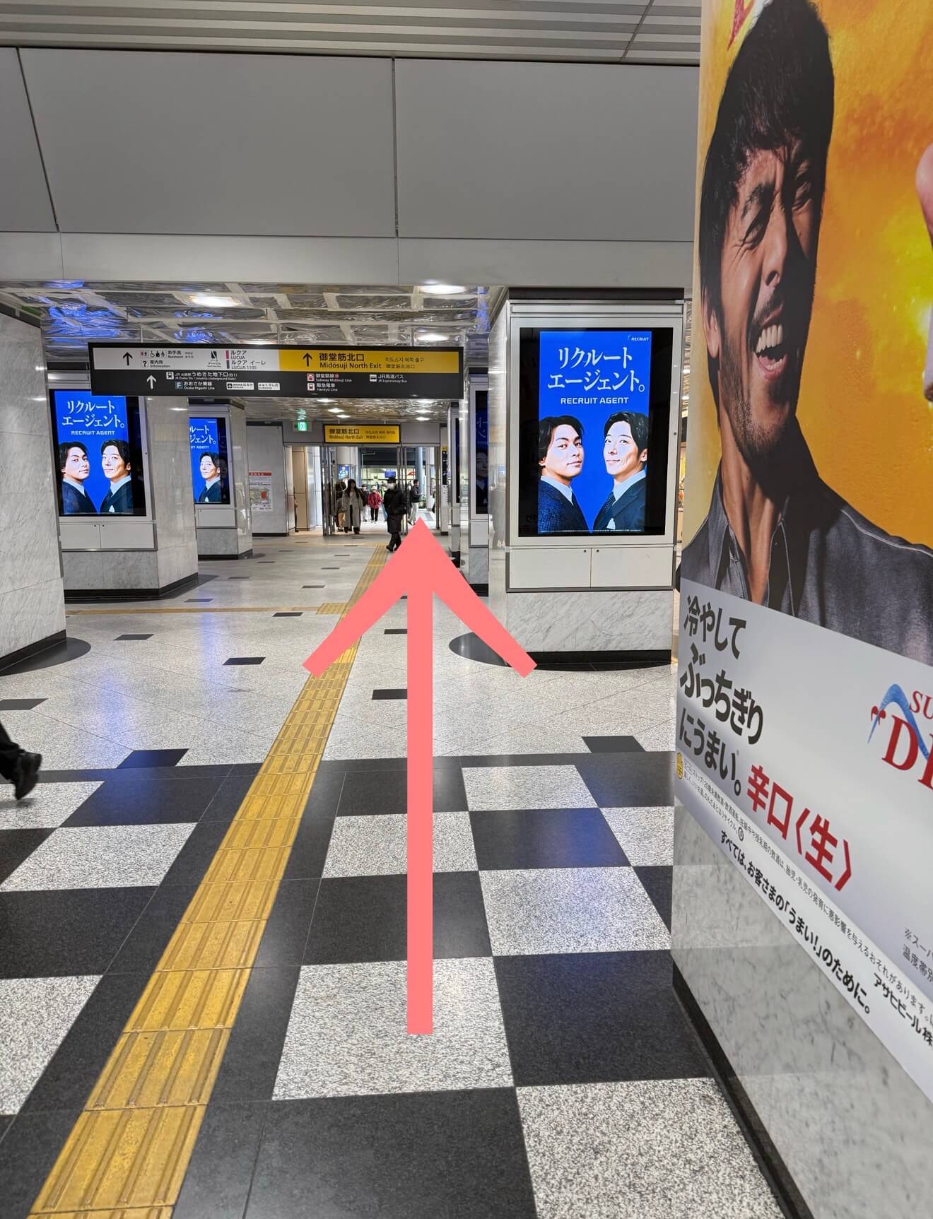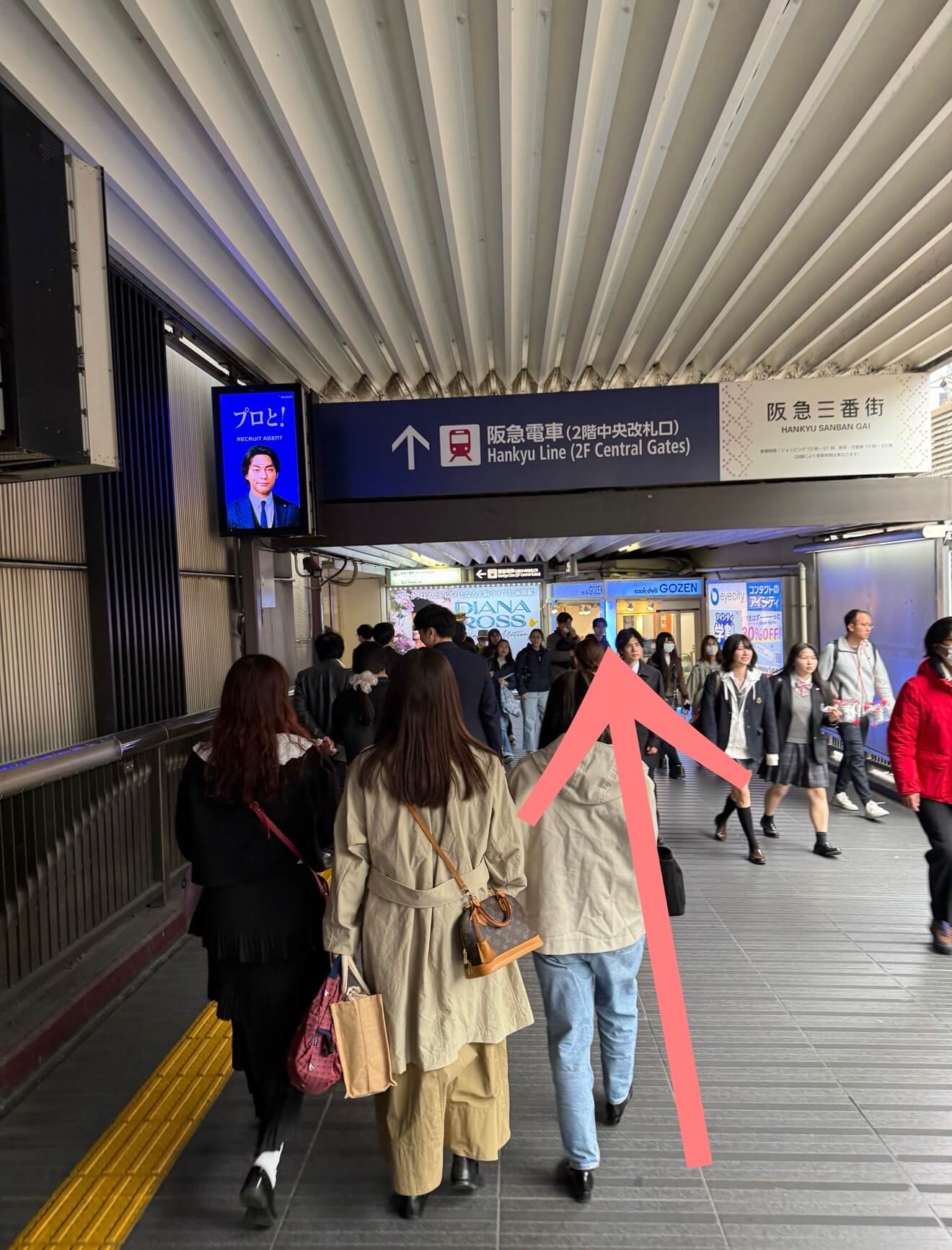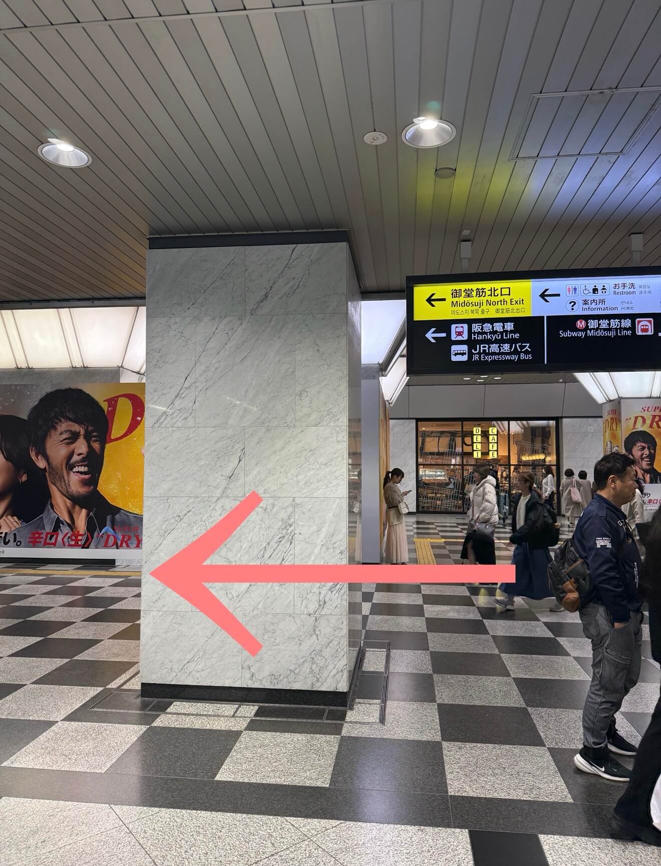 そのまま直進すると阪急電車の中央改札口が見えるので、改札手前で右に曲がります。
