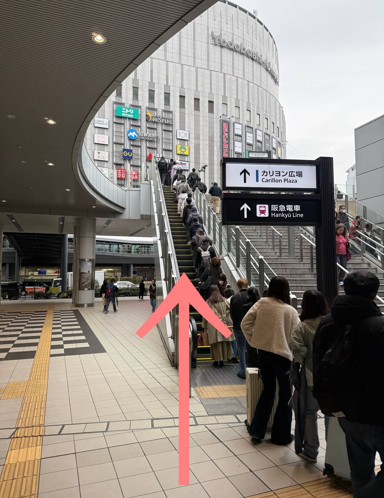 直進して阪急電車の中央改札方向に進みます