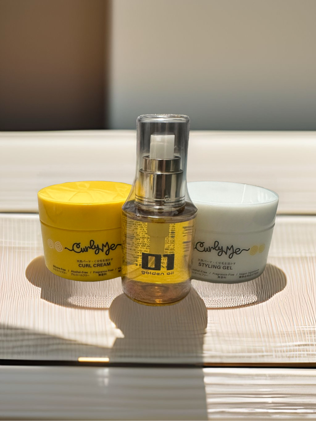 よりしっかり捻転を抑えたい日は、ゼロワンオイルにカーリークリームを混ぜてからカーリーミージェルを重ねる。
